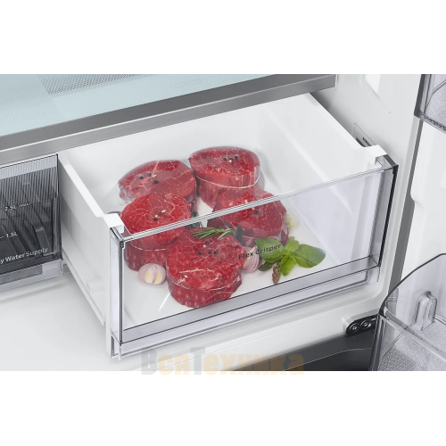 - FlexZone™ (зона свежести): Четыре режима работы (Вино, Мясо/Рыба, Фрукты/Овои, Напитки) позволяют идеально настроить температуру и влажность для разных категорий продуктов.