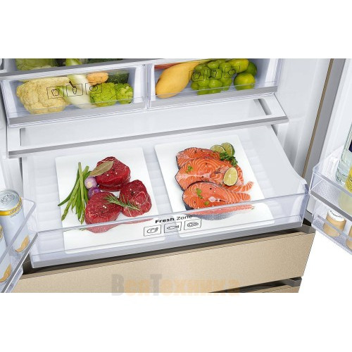 Это специальный изолированный отсек с отдельной системой вентиляции и регулировкой влажности. Здесь вы можете хранить скоропортящиеся продукты: сыр, рыбу, мясо, зелень. Режим «Высокая влажность» идеален для овощей и зелени, предотвращая увядание. Режим «Низкая влажность» лучше подходит для мяса и рыбы, сохраняя их сочность без излишней конденсации.