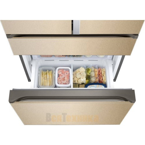 - Простор и организация: Широкие полки, вместительные ящики для овощей и фруктов, удобные дверные полки-контейнеры позволяют идеально организовать пространство даже для очень крупных покупок.