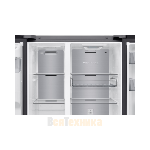 - Большая зона свежести Metal Cooling: Специальный отсек с металлической панелью, который быстро отводит тепло от продуктов, сохраняя их первоначальную свежесть, вкус и витамины в 1,5 раза дольше, чем в обычном отделении холодильника.