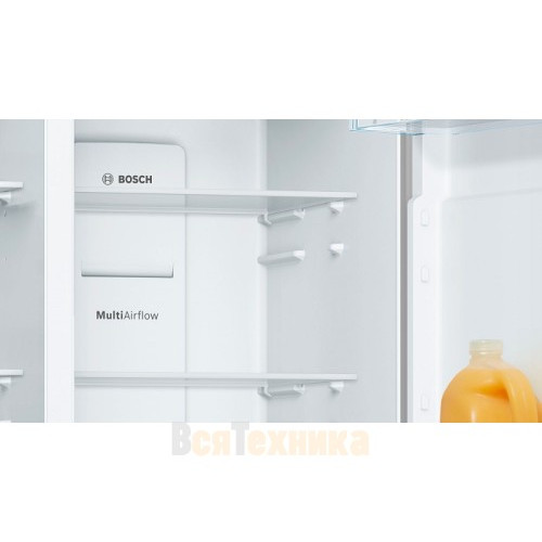 - MultiAirflow: Равномерное распределение холодного воздуха по всем уголкам холодильной камеры благодаря многопоточной системе вентиляции. Температура стабильна на каждой полке, что исключает «теплые зоны».