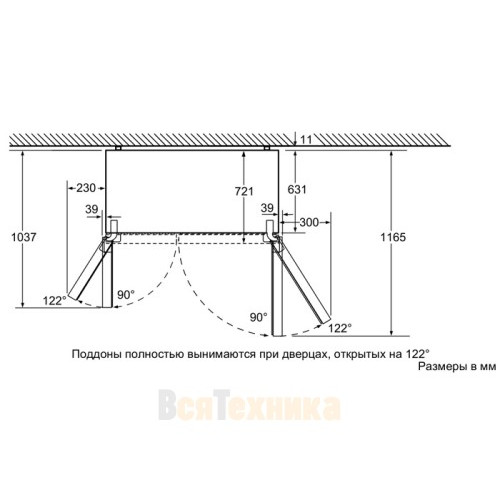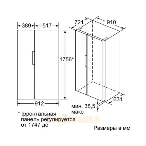 - Холодильная камера (438 л) справа организована максимально продуманно, включая зону VitaFresh, регулируемые полки и удобные дверные карманы для бутылок.