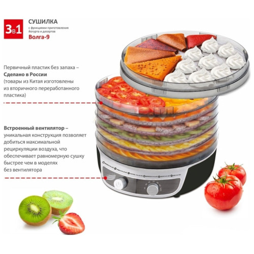 Сушилка для овощей Великие реки Волга-9 черный/белый