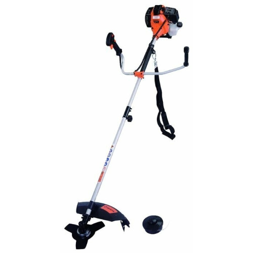 тип триммера: переносной мощность ДВС 2.6 л.с. двухтактный двигатель емкость топливного бака 0.7 л ширина скашивания 25 см режущий элемент триммера: леска и нож конструкция штанги: прямая форма рукояти: Т-образная (велосипедная) плечевой ремень / складная ручка наличие колес: нет вес 7 кг