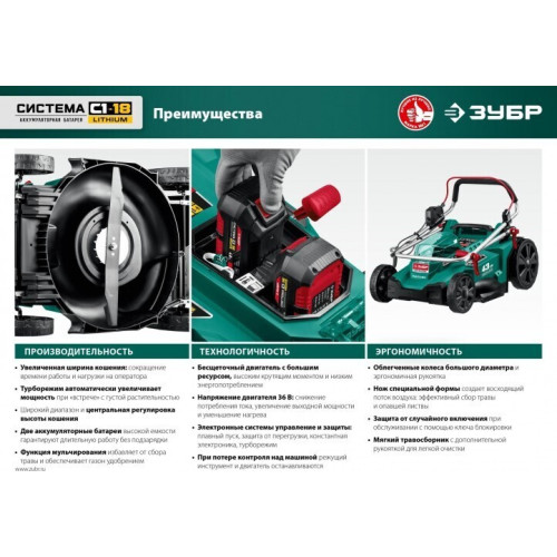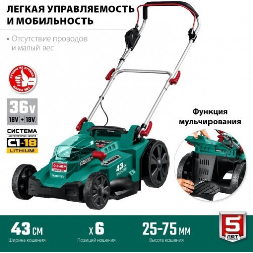 Газонокосилка аккумуляторная ЗУБР ГКЛ-4336