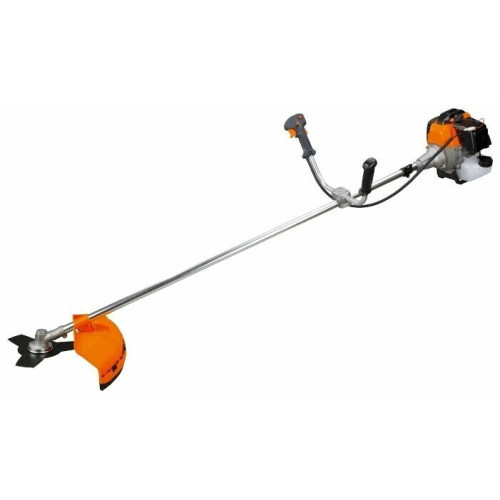 тип триммера: переносной мощность ДВС 5.7 л.с. двухтактный двигатель емкость топливного бака 1.2 л ширина скашивания 25 см режущий элемент триммера: леска и нож конструкция штанги: прямая форма рукояти: Т-образная (велосипедная) плечевой ремень наличие колес: нет вес 7.5 кг