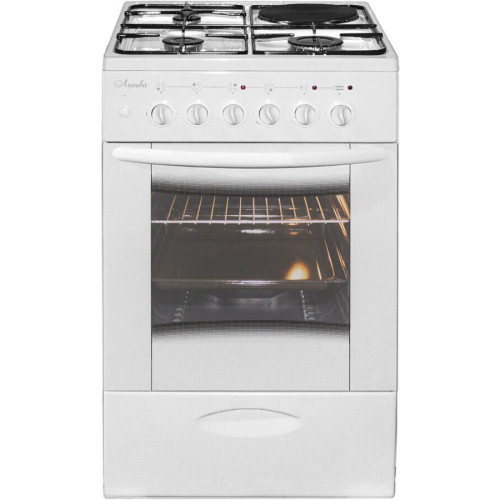 * комбинированная плита * эмалированная рабочая поверхность * 3 газовые конфорки, 1 электрическая конфорка * электрическая духовка, 57 л * ШхГхВ: 50x60x84 см * гриль электрический * механическое управление