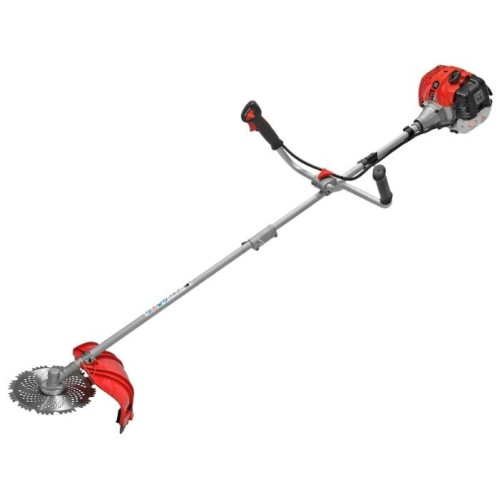 тип триммера: переносной мощность ДВС 1.4 л.с. двухтактный двигатель емкость топливного бака 0.7 л ширина скашивания 23 см режущий элемент триммера: леска и нож, леска 2.40 мм конструкция штанги: прямая форма рукояти: Т-образная (велосипедная) плечевой ремень / складная ручка наличие колес: нет вес 7.9 кг