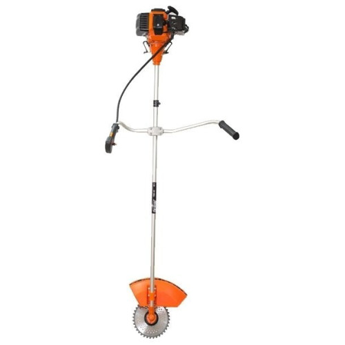 тип триммера: переносной мощность ДВС 2.3 л.с. емкость топливного бака 1 л ширина скашивания 25 см режущий элемент триммера: леска и нож конструкция штанги: прямая форма рукояти: Т-образная (велосипедная) плечевой ремень наличие колес: нет вес 8 кг