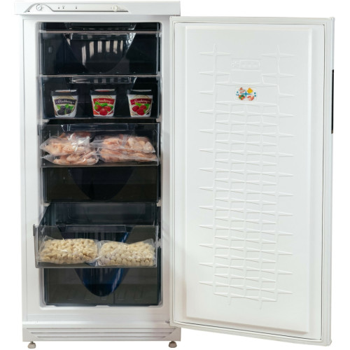 Морозильная камера Саратов 153 с электромеханическим управлением удобна в эксплуатации и вместительна. Относительно небольшие размеры и в то же время большой полезный объем камеры обеспечивают сохранность продуктового запаса для семьи из 3-4 человек. К неоспоримым преимуществам морозильника относятся: температура в камере от -18 С до -24 С, что позволяет хранить продукты весь год; шесть отдельных боксов для хранения продуктов; сохранение температурного режима в течение 12 часов после отключения. Благодаря стильному и современному дизайну, возможности перенавешивания двери, а также роликам вместо ножек сзади, позволяющим легко транспортировать холодильник, он поместится даже на самой маленькой кухне. Надежность и качество изделия обеспечивает применение в его производстве высокотехнологичного оборудования, экологически чистых материалов и комплектующих.