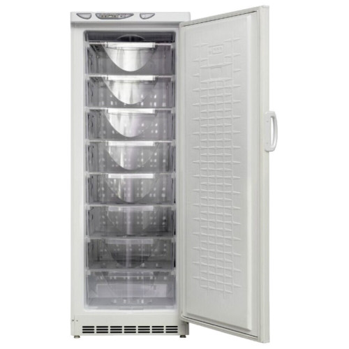 Морозильный шкаф Саратов-175 (МКШ-250) вместимостью 250 л позволит на долгое время сохранить большое количество продуктов. Вертикальное расположение и небольшие габариты позволят поставить шкаф даже в узкий проем, что является преимуществом перед другими моделями, ведь на кухне часто не хватает места для необходимой техники. Во внутреннем пространстве морозильника удобно расположены 8 ящиков, которые помогут соблюсти правильные условия хранения и не нарушать товарное соседство. Заморозка продуктов в Саратов-175 (МКШ-250) происходит при температуре −24 градуса, для хранения достаточно установить температуру −18 градусов. Электромеханическое управление осуществляется путем поворота ручки термостата. Механизм крепления дверцы морозильника позволяет изменить направление ее открывания в противоположную сторону. Корпус морозильного шкафа изготовлен из нержавеющей стали.