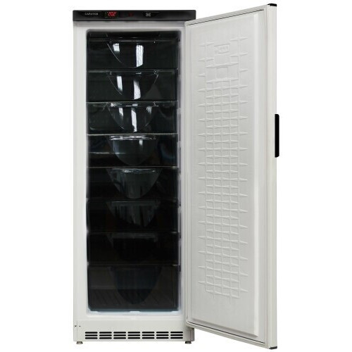 Морозильный шкаф Саратов-175 (МКШ-250) вместимостью 250 л позволит на долгое время сохранить большое количество продуктов. Вертикальное расположение и небольшие габариты позволят поставить шкаф даже в узкий проем, что является преимуществом перед другими моделями, ведь на кухне часто не хватает места для необходимой техники. Во внутреннем пространстве морозильника удобно расположены 8 ящиков, которые помогут соблюсти правильные условия хранения и не нарушать товарное соседство. Заморозка продуктов в Саратов-175 (МКШ-250) происходит при температуре −24 градуса, для хранения достаточно установить температуру −18 градусов. Электромеханическое управление осуществляется путем поворота ручки термостата. Механизм крепления дверцы морозильника позволяет изменить направление ее открывания в противоположную сторону. Корпус морозильного шкафа изготовлен из нержавеющей стали.