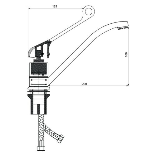 Универсальная монтажная гайка. Гибкая подводка 40 см двухцветная в оплетке из фибронейлона СЛАВЕН.Аэратор - монетарный пластиковый. Без подключения к фильтру. Область применения, медицинских учреждений. Без донного клапана.