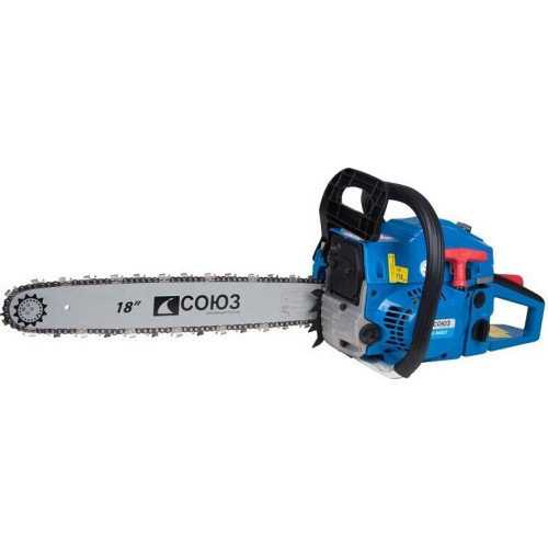Бензопила Союз ПТС-99452Т подходит для заготовки дров, строительных работ и распиливания деревьев. Система легкого старта облегчает запуск двигателя. Цепной тормоз срабатывает при обратном ударе, а также управляется вручную для безопасности оператора. Система гашения вибрации снижает утомляемость, обеспечивая высокопроизводительный цикл работы. Пила снабжена зубчатым упором для лучшей управляемости при пилении.