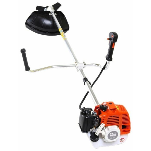 тип триммера: переносной мощность ДВС 2 л.с. двухтактный двигатель емкость топливного бака 0.85 л ширина скашивания 25 см режущий элемент триммера: леска и нож конструкция штанги: прямая форма рукояти: Т-образная (велосипедная) плечевой ремень наличие колес: нет