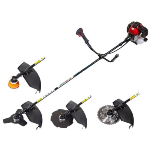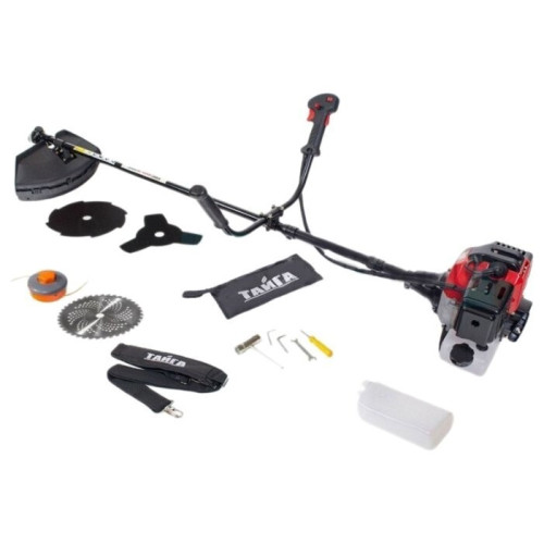 тип триммера: переносной мощность ДВС 4.7 л.с. двухтактный двигатель емкость топливного бака 1.2 л ширина скашивания 42 см режущий элемент триммера: леска и нож, леска 2.50 мм конструкция штанги: прямая форма рукояти: Т-образная (велосипедная) плечевой ремень наличие колес: нет вес 7 кг