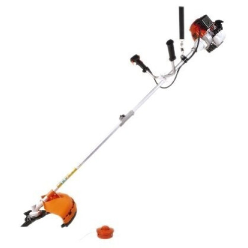 тип триммера: переносной мощность ДВС 2.2 л.с. четырехтактный двигатель емкость топливного бака 1 л ширина скашивания 44 см режущий элемент триммера: леска и нож конструкция штанги: прямая форма рукояти: Т-образная (велосипедная) плечевой ремень / складная ручка наличие колес: нет
