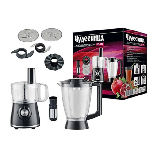 Многофункциональный прибор для нарезки, измельчения, смешивания и взбивания продуктов. Это целый кухонный комбайн, в который входят измельчитель 1,2 л., блендер 1,5 л., овощерезка, фильтр для сока, эмульсионный диск для соусов и майонеза. С помощью комбайна вы за считанные секунды справитесь с измельчением любых продуктов для крем-супа, воздушного омлета, коктейля, смузи, мусса, детского питания и многого другого. Блендер оснащен 2 ступенчатым переключателем скоростей для максимальной производительности. Оснащен мощным мотором с низким уровнем вибрации. Лезвия выполнены из нержавеющей стали, справляются как с крупными частицами, так и с более мелкими. А прорезиненные ножки помогут зафиксировать прибор на кухонном столе. Управление: 2 скорости с плавной регулировкой, импульсный режим. Насадки: универсальный нож, насадка для теста, эмульсионная насадка, терка, насадка для нарезки ломтиками. Общее число насадок — 7.