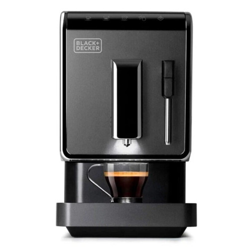 Автоматическая кофемашина Black+Decker BXCO1470E гармонично впишется в интерьер. Панель управления сенсорная. Для вспенивания молока есть ручной капучинатор. Крепость кофе и объем порции можно регулировать по своему вкусу. Диспенсер настраивается по высоте под чашки разного размера.