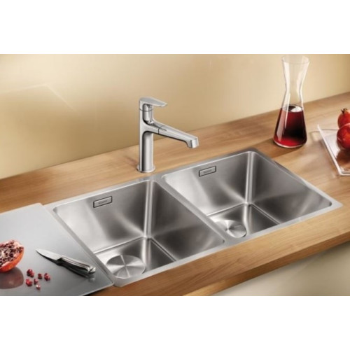 ANDANO 340/340-IF - изысканная врезная мойка от Blanco. Две вместительные чаши создают дополнительный комфорт использования и позволяют эффективно и функционально организовать процесс приготовления пищи. Эргономичный дизайн и большой объем позволяют мыть посуду нестандартных форм и размеров с повышенным удобством. Нержавеющая сталь устойчива к перепаду температур, легко очищается и является безопасной для продуктов питания. Полированная поверхность очень долго сохраняет отличный внешний вид.