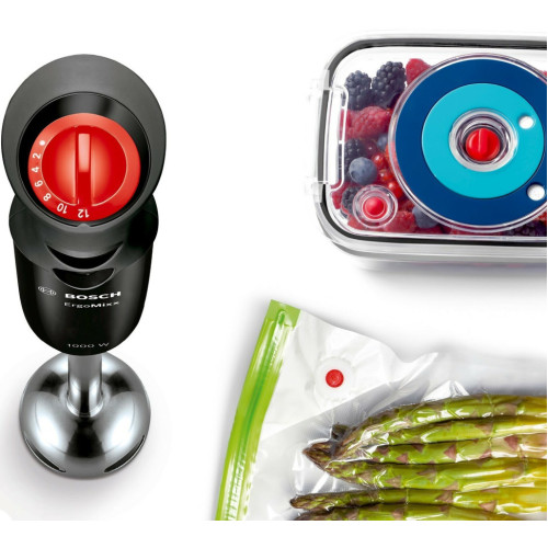Погружной блендер Bosch MS6CB61V1 - незаменимый помощник для любой хозяйки. Вы получите в свое распоряжение многофункциональный прибор, особенностью которого является поддержка функции вакуумирования. Воспользовавшись вакууматором, вы сможете значительно увеличить срок хранения продуктов и уже приготовленных блюд. Блендер Bosch MS6CB61V1 обладает двумя функциями смешивание и измельчение, обладает высоким уровнем мощности: максимальное значение данного показателя составляет 1000 Вт. Прибор без проблем справится с задачами любого уровня сложности. 12 стандартных скоростных режимов дополнены режимом «турбо». Габариты блендера 62x393x55 мм.