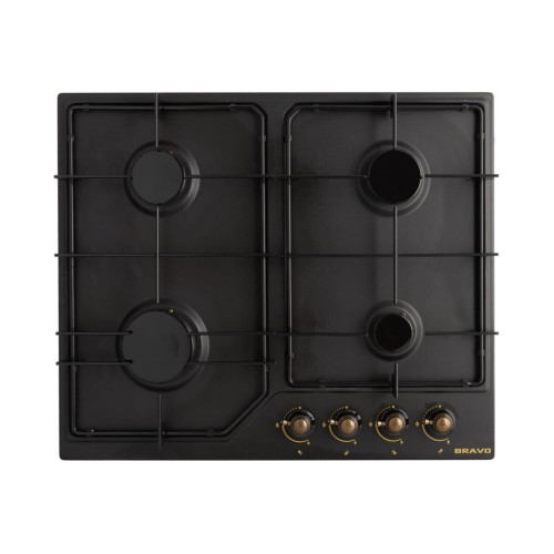 Газовая варочная поверхность Bravo FGH60S4 BR - бытовая техника, необходимая на кухне каждой современной хозяйке. Модель выполнена в чёрном (антрацитовом) цвете и прекрасно впишется в любой интерьер, будет особенно хорошо смотреться на современной кухне. Основные характеристики модели: 4 газовые конфорки, понятная панель управления с поворотными переключателями, автоматический электророзжиг, а также удобные и практичные стальные эмалированные решётки расположенные на черной матовой стальной поверхности. Ручки управления выполнены из высокопрочного пластика в рустикальном ретро стиле. Благодаря функции газ-контроля можно не беспокоится о случайном сквозняке, а повседневный уход за матовой поверхностью не доставит хлопот. Подключить модель можно не только к центральному газоснабжению, но и к баллонному газу, для этого в комплектацию входит необходимый набор жиклёров и комплект для установки. Все модели газовых поверхностей BRAVO оборудованы системой, позволяющей осуществить поджиг газа автоматически, от ручки управления конкретной конфорки. Практичная компактная и лёгкая в уходе Газовая варочная поверхность BRAVO FGH60S4 BR станет незаменимой помощницей и украсит Вашу кухню в квартире и загородном доме. Новая линейка встраиваемой бытовой техники BRAVO разработана с учётом пожеланий наших покупателей и идеально впишется в современный и классический интерьер кухни, будет практична в уходе и доступна по цене и позволит приготовить изысканные, традиционные и повседневные блюда. Готовьте с безупречным стилем!