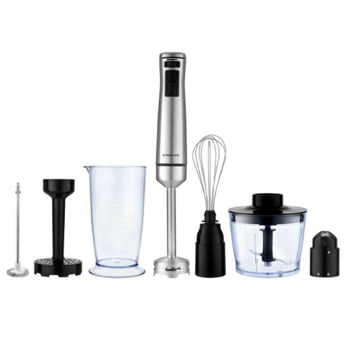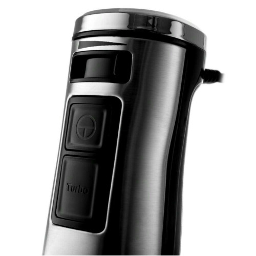 Погружной блендер с мощностью 1200 Вт поможет вам приготовить разнообразные блюда. У блендера плавная регулировка скорости, а также есть функция «Турбо», благодаря чему вы сможете взбить тесто или перемолоть орехи в измельчителе, с помощью насадки-капучинатора взбить сливки или молоко для капучино. * Погружная часть и лезвия из нержавеющей стали * Плавная регулировка скорости * Насадка-венчик для взбивания * Стакан для смешивания 700 мл * Насадка-блендер для измельчения и смешивания * Насадка для приготовления пюре * Капучинатор * Насадка-измельчитель объемом 500 мл