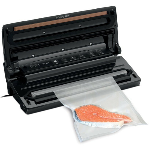 Вакуумный упаковщик CASO VC 350 может запаивать пакеты шириной до 30 см. Двойной сварной шов надежнее обычного, а благодаря электронному контролю температуры он всегда качественный. Съемная вакуумная камера для жидкости позволяет аккуратно собрать внутри прибора излишнюю влагу из пакета и легко удалить ее. В подарок к CASO VC 350 идет 2 рулона профессиональной пленки. Прибор оснащен резаком для ее раскроя. Упаковщик откачивает воздух из пакета с продуктами и запаивает его, создавая безвоздушную среду, в которой не размножаются гнилостные бактерии и плесень. Это значительно продлевает срок хранения и удобно для маринования. При необходимости можно просто запаять пакет. Кнопка импульсного режима удобна для упаковки нежных продуктов: воздух откачивается до тех пор, пока ее держишь нажатой – можно остановиться в тот момент, когда нужно.