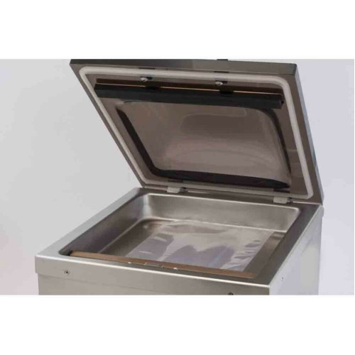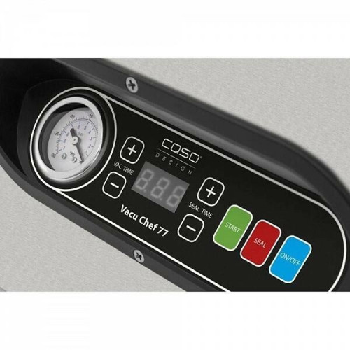 CASO VacuChef 77 может работать с любыми продуктами с разной консистенцией. Запечатывайте твердые овощи, фрукты, жидкие супы и здоровую еду. Наличие камеры меняет подход к упаковке, упрощает работу и дает превосходный результат без лишних сложностей. Воздух удаляется из всей камеры и жидкость не выливается из-за разницы в давлении. После вакуумации, в камеру возвращается нормальное давление. Комплектация: * рулоны 20 x 300 см * рулоны 30 x 300 см Внешний вид: Вакууматор изготовлен из нержавеющей стали как внутри, так и снаружи. Для перемещения устройства предусмотрены ручки по бокам корпуса. На крышке, изготовленной из прочного закаленного стекла, есть смотровое окно для наблюдения за процессом работы. Управление: Все управление вынесено на обширную сенсорную панель. Также на корпусе находится манометр. Двухпоршневый насос откачивает до 77 уту. Пакет запаивается двойным швом. Сварная планка длиной 30 см.