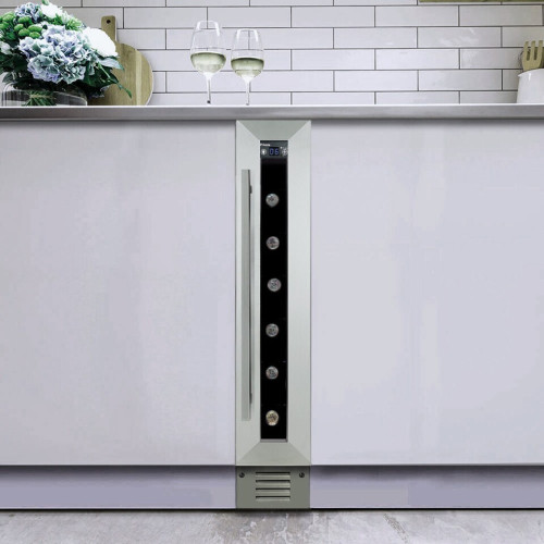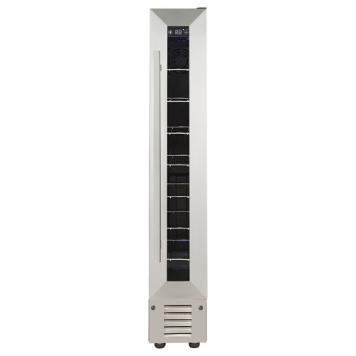 ellar Private CP007 это самый узкий холодильник для вина вместимостью до 7 бутылок. Данную модель винного холодильника можно встраивать в кухонную мебель, он идеально сконструирован для монтирования под столешницу, но также его можно устанавливать и как отдельно стоящим. В этой модели винного шкафа полностью отсутствует вибрация внутри камер, что является обязательным условием для хранении вина, а также исключено попадание ультрафиолетового излучения сквозь стекло дверцы. Каждая бутылка вина постоянно проветривается при помощи бесшумных вентиляторов установленных внутри винного шкафа. Постоянная температура в камере настраивается при помощи сенсорных кнопок расположенных за дверцей, а цифровой индикатор отображает реальную температуру в камере. За счет компрессорной системы охлаждения он имеет расширенный диапазон температур от 5 до 20°С (подходит для хранения красных и белых вин).