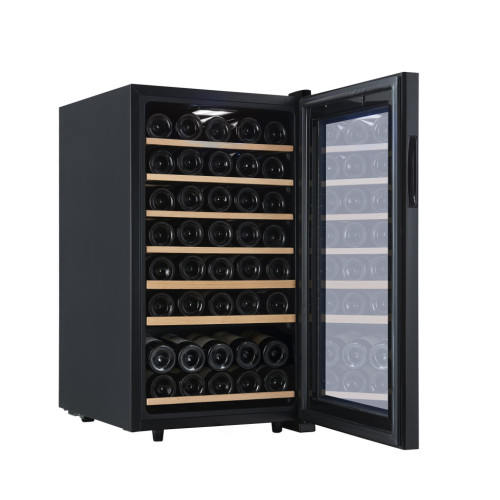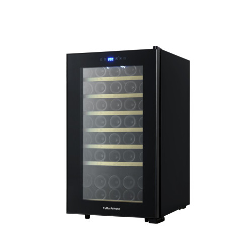 CellarPrivate CP052 это однозонный винный шкаф, вместимостью до 50 бутылок. Температура в камере 5-20°С Сенсорные кнопки управления температурой и подсветкой расположены на стеклянной дверце. Данная модель винного шкафа оснащена компрессорной системой охлаждения, за счет чего его можно использовать в достаточно теплом помещении, при этом, он будет стабильно держать заданную температуру. Постоянное проветривание бутылок обеспечивается бесшумными вентиляторами, установленными внутри камеры это предотвращает появление посторонних запахов и образование плесени. CellarPrivate CP052 оснащен 7 деревянными съёмными полками.