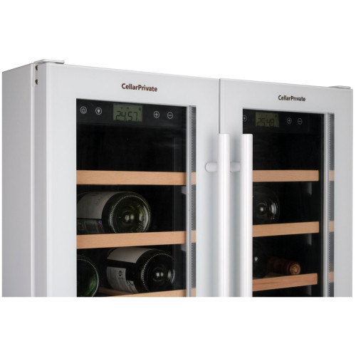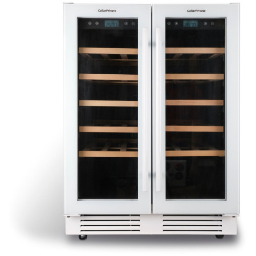 тип винного шкафа: двухтемпературный, высота: 82 см, ширина: 59.50 см, глубина: 57.50 см, емкость винного шкафа, бут.: 42, количество камер: 2, класс энергопотребления: B, тип компрессора: стандартный, цвет корпуса: белый