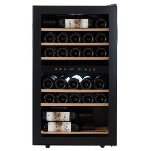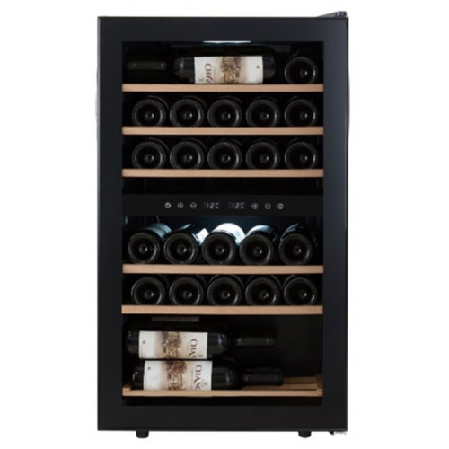 Cellar Private CP029-2T это двух камерный винный шкаф, вместимостью до 29 бутылок. Температура выставляется в каждой камере раздельно, что позволяет хранить одновременно красные и белые вина. Температура в верхней камере 5-12С / в нижней камере 12-18С. Сенсорные кнопки управления температурой и подсветкой расположены на панели за стеклянной дверцей. Данная модель винного шкафа оснащена компрессорной системой охлаждения, за счет чего его можно использовать в достаточно теплом помещении, при этом, он будет стабильно держать заданную температуру. CP029-2T можно использовать как отдельно стоящий винный шкаф. Высота регулируется при помощи ножек. Постоянное проветривание бутылок обеспечивается бесшумными вентиляторами, установленными внутри камер это предотвращает появление посторонних запахов и образование плесени. Cellar Private CP029-2T оснащен 6 деревянными съемными полками, на которых с легкостью разместятся любые бутылки. Общие данные: Размеры: высота: 85 см ширина: 48 см глубина: 43 см Полезный объем: 80 л Максимальное количество бутылок: 29 Тип управления: электронный Климатический класс: ST (от 18C до 38C) Цвет: черный Температурный диапазон: верхняя камера от 5 до 12C / нижняя от 12 до 18C Система охлаждения: Компрессорная Винное отделение: 2 зоны Полки: 6 шт. деревянные, съемные Циркуляция воздуха: Принудительная, при помощи бесшумного вентилятора Дополнительная информация: Корпус: Металл Дверь: Черная рамка, открывается слева на право Тип стекла: Двойное, тонированное, с защитой от У. Ф. излучений Ручка: Утоплена в дверцу Дисплей: Цифровой, показывает температуру в камере Управление: Сенсорное, внутри за дверцей Внутренняя подсветка: Светодиодная (LED), мягкий синий цвет, выключается кнопкой Уровень шума: До 44 дб (на уровне бытового прибора) Вибрация: Исключена