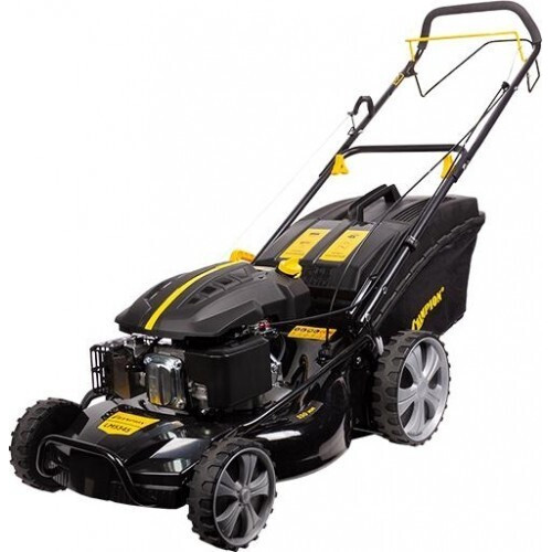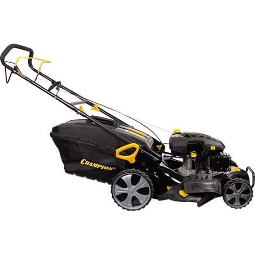 Газонокосилка бензиновая Champion LM5345 – модель с большой мощностью и захватом для окашивания больших площадей. Сердцем косилки является бензиновый верхнеклапанный четырехтактный двигатель собственного производства, работающий на чистом 92 бензине. Двигатель развивает мощность в 6 лошадиных сил. Такой мощности вполне достаточно не только для вращения стального двухлопастного ножа, но и для обеспечения привода на заднюю колесную ось. Корпус косилки стальной с передним стальным бампером безопасности. Косилка комплектуется большим комбинированным травосборником. Верхняя часть бункера выполнена из полипропилена и имеет встроенный флажок индикатор наполнения. Нижняя часть сборника сделана из плотной не гниющей синтетической ткани. Задние колеса увеличены по отношению к передним на 30%. Благодаря большим задним колесам косилка с легкостью передвигается по кочкам и неровному рельефу местности. Кроме травосборника в комплект поставки так же входит мульчирующая заглушка и патрубок бокового выброса, позволяющие работать в соответствующих режимах. Переключения между режимами производится быстро и без применения, каких бы то ни было инструментов. Газонокосилка Champion LM 5345 имеет центральную регулировку высоты среза травы. Осуществляется регулировка одним удобным рычагом, расположенным в районе задней колесной оси. Над рычагом регулировки расположены ступени высоты, всего их семь. Рукоятки косилки крепятся быстрозажимными барашковыми соединениями, позволяющими быстро сложить или разложить рукоятку, а так же отрегулировать ее под рост оператора. Сама рукоятка выполнена из полых стальных трубок, обеспечивающих хорошую жесткость конструкции. Газонокосилка Champion LM 5345 может окашивать газоны площадью до 20 соток. []Ширина 930 мм []Высота 470 мм []Глубина 570 мм []Вес 45 кг