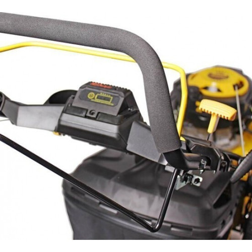 Газонокосилка бензиновая Champion LM5346E – модель с большой мощностью и захватом для окашивания больших площадей. Сердцем косилки является бензиновый верхнеклапанный четырехтактный двигатель. Двигатель развивает мощность в 6 лошадиных сил. Такой мощности вполне достаточно не только для вращения стального двухлопастного ножа, но и для обеспечения привода на заднюю колесную ось. Корпус косилки стальной с передним стальным бампером безопасности. []Ширина 980 мм []Высота 430 мм []Глубина 570 мм []Вес 43 кг
