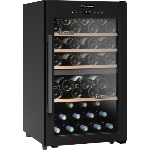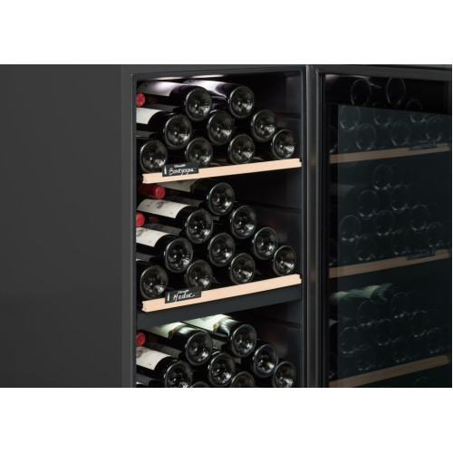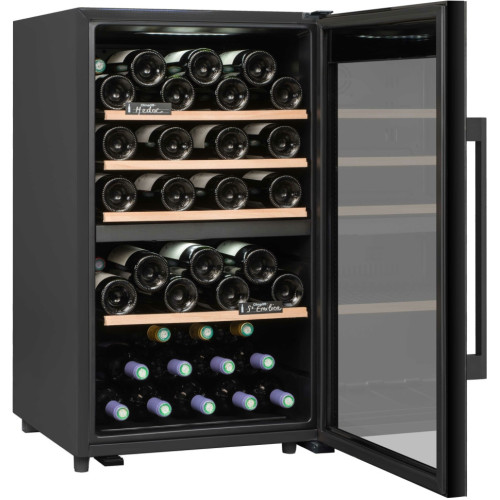 тип винного шкафа: двухтемпературный, высота: 85.50 см, ширина: 50 см, глубина: 54 см, емкость винного шкафа, бут.: 56, количество камер: 1, 2, класс энергопотребления: G, цвет корпуса: чёрный