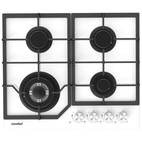 Встраиваемая газовая варочная панель Comfee CGH610GW Общие данные: Габариты: 11х60х51 см.; Рабочая поверхность: закаленное стекло; Количество конфорок: 4, в т.ч. WOK; Газ-контроль каждой конфорки; Электроподжиг. Управление и функции: Фронтальные поворотные регуляторы. Дополнительная информация: Чугунные решетки.
