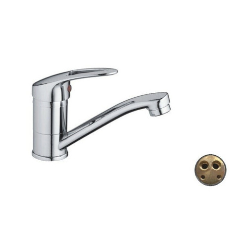 Смеситель для раковины Cron CN4539 однорычажный, с поворотным изливом. Аэратор в смесителе позволит обеспечить равномерный поток воды , а также ее относительное смягчение. Специальная сетка отфильтровывает различные примеси. Конструкция смесителей на шпильке предполагает их установку в специальное отверстие с помощью креплений. Чаще всего применяются две шпильки, которые зажимаются винтами с задней стороны раковины или умывальника. Внутри данного прибора находится картридж из керамики 35 мм, который смешивает воду для необходимого показателя температуры. Особенностью прибора такого типа стали долговечность и надежность.