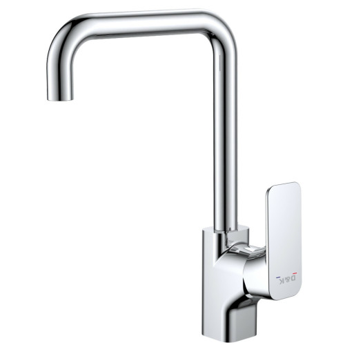 Современный смеситель для кухни D&K выполнен из латуни в цвете хром. Излив смесителя поворотный. Монтаж производится на поверхность с одним отверстием. Управление смесителем рычажное.