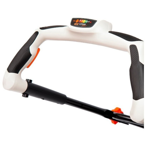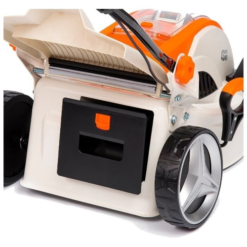 колесная (несамоходная) электрический двигатель от аккумулятора (40 В) ширина / высота скашивания: 43 см / 25-75 мм выброс травы в мягкий травосборник , назад мульчирование вес: 19 кг
