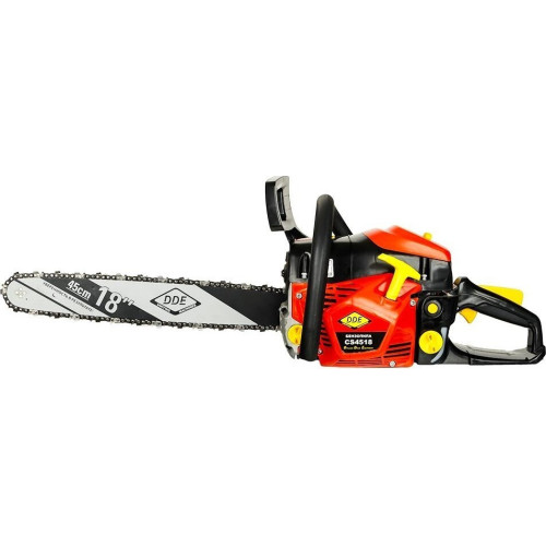 Бензопила DDE CS4518 удобна и проста в эксплуатации. Оснащена инерционным тормозом цепи, что предотвращает травмирование при работе. Антивибрационная технология снижает вибрацию, передаваемую от инструмента, и воздействие на суставы, то есть способствует комфортной работе. Комплектация * Бензопила; * Цепь; * Шина; * Кожух шины; * Комбинированный гаечный ключ; * Инструкция по эксплуатации; * Коробка.