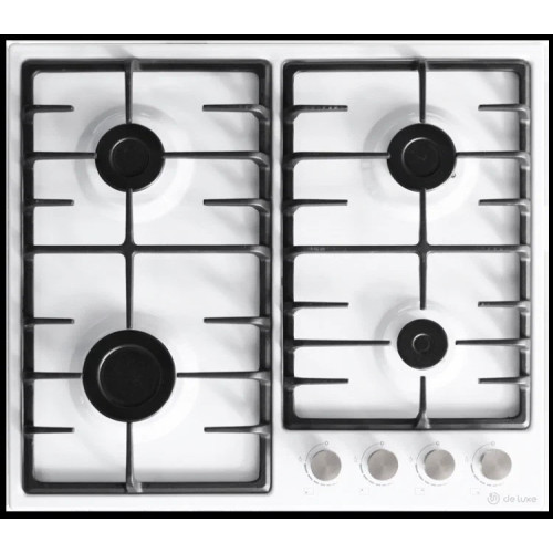 Название Газовая варочная поверхность De Luxe 6040.00г 001. Категория Встраиваемые варочные панели. тип панелигазовая, количество конфорок4, материал панелиэмаль, цвет панели конфорокбелый, ширина59 см, глубина52 см. Тип панели газовая. Ширина 59 см. Высота 12 см. Глубина 52 см. Номинальная мощность 7.2 кВт. Материал панели эмаль. Общее количество конфорок 4. Конфорок газовых 4. Электроподжиг да. Чугунные решетки да. Цвет панели конфорок белый.