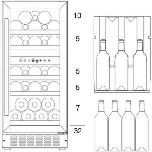 | Емкость винного шкафа (в бутылках) | 32 |