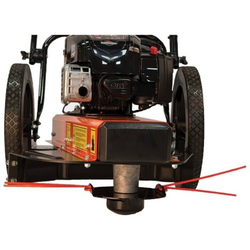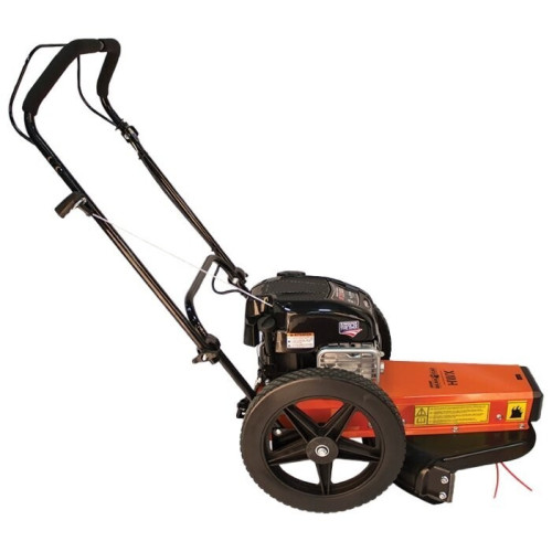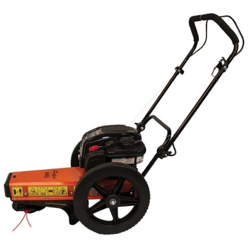 тип триммера: колесный мощность ДВС 6 л.с. четырехтактный двигатель емкость топливного бака 1 л ширина скашивания 61 см режущий элемент триммера: леска складная ручка наличие колес: двухколесная вес 35 кг