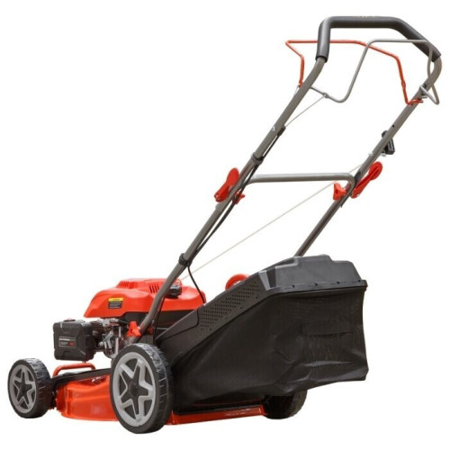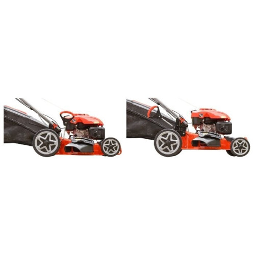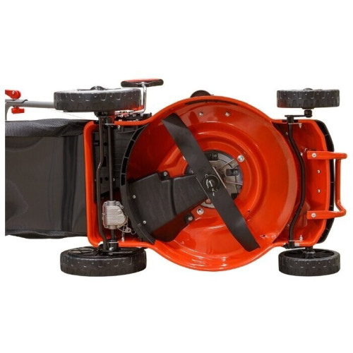 самоходная бензиновый 4х тактный двигатель, 5 л.с. ширина / высота скашивания: 46 см / 25-75 мм выброс травы в мягкий травосборник , вбок, назад мульчирование вес: 33 кг бак на 1 л уровень шума 96 дБ