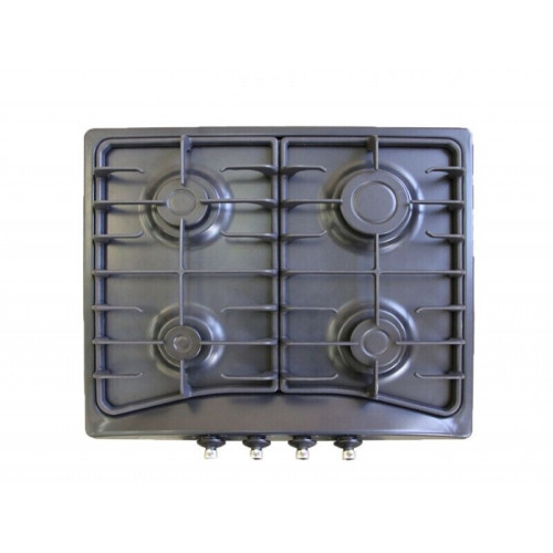 Вид электроконфорки: нет; Исполнение: классическая; Ширина, см: 58; Материал решеток: чугун; Материал поверхности: эмаль; Количество конфорок: 4; Цвет: Черный; Тип варочной поверхности: газовая