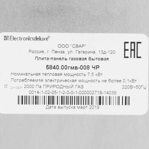 Газовая варочная панель Electronicsdeluxe 5840 00 008 ЧР