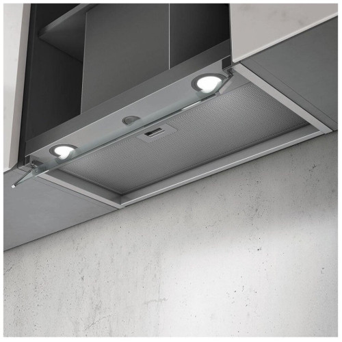 Вытяжка ELICA BOX IN IX/A/60 может быть как встроена в подвесной шкаф, так и вмонтирована между двумя шкафами. Стильная поверхность выполнена в цвете «нержавеющая сталь» и дополнена козырьком из прозрачного стекла. Геометричный дизайн позволяет с легкостью интегрировать устройство в кухонный интерьер с любым стилистическим оформлением. Прибор может работать в режимах отвода и рециркуляции (угольный фильтр для работы в режиме рециркуляции приобретается отдельно; монтажный комплект дымохода для работы в режиме отвода также приобретается отдельно). Алюминиевый фильтр пригоден для мытья в посудомоечной машине при бережном цикле. Модель оснащена утапливаемым вращающимся программатором, который управляет тремя скоростями вытяжного вентилятора. Устройство имеет производительность до 750 куб. м в час. На первой скорости уровень шума составляет всего 48 Дб.