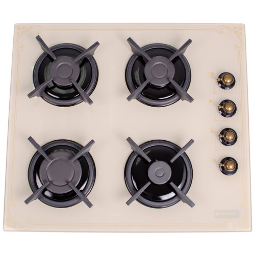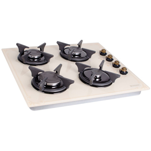 тип панели: газовая, количество конфорок: 4, материал панели: закаленное стекло, установка: независимая, переключатели: поворотные, ширина: 61 см, глубина: 51 см, газ-контроль конфорок, максимальная потребляемая мощность: 5.90 кВт