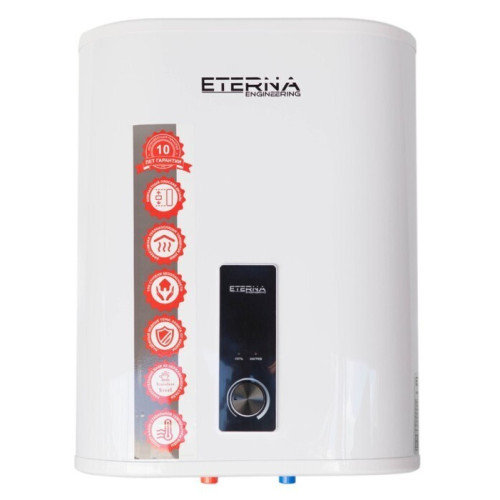 Водонагреватель электрический ETERNA (ЭТЕРНА) FS-30 является надежным и удобным вариантом обеспечения горячей воды в доме. Когда вода достигает заданной температуры, нагревательный элемент отключается, а вода остается в баке, готовой к использованию. Прибор монтируется на твердую вертикальную поверхность. Особенности и преимущества: * Конкурентная цена * Эффективная теплоизоляция позволяющая долго сохранять воду нагретой * Удобное и интуитивно-понятное управление * Реализовано до четырех ступеней безопасности водонагревателей * Многообразие моделей * Компактный плоский дизайн * Наличие на складе всего модельного ряда * Поддержание стабильной температуры воды * Бак из нержавеющей стали AISI314 * Медные нагревательные элементы * Системы защиты обратный клапан, от перегрева, предохранительный клапан * Гарантия на внутренний накопительный бак – 10 лет, на систему управления и нагревательные элементы – 1 год. Модельный ряд водонагревателей ETERNA серии FS выполнен в четырех вариантах объемом 30, 50, 80, 100 литров с баками из высококачественной нержавеющей стали. Наличие надежных ТЭНов из меди, плоские корпуса и высокие технические характеристики – все это по оптимальной цене, гарантируют приборам безопасную и длительную эксплуатацию.